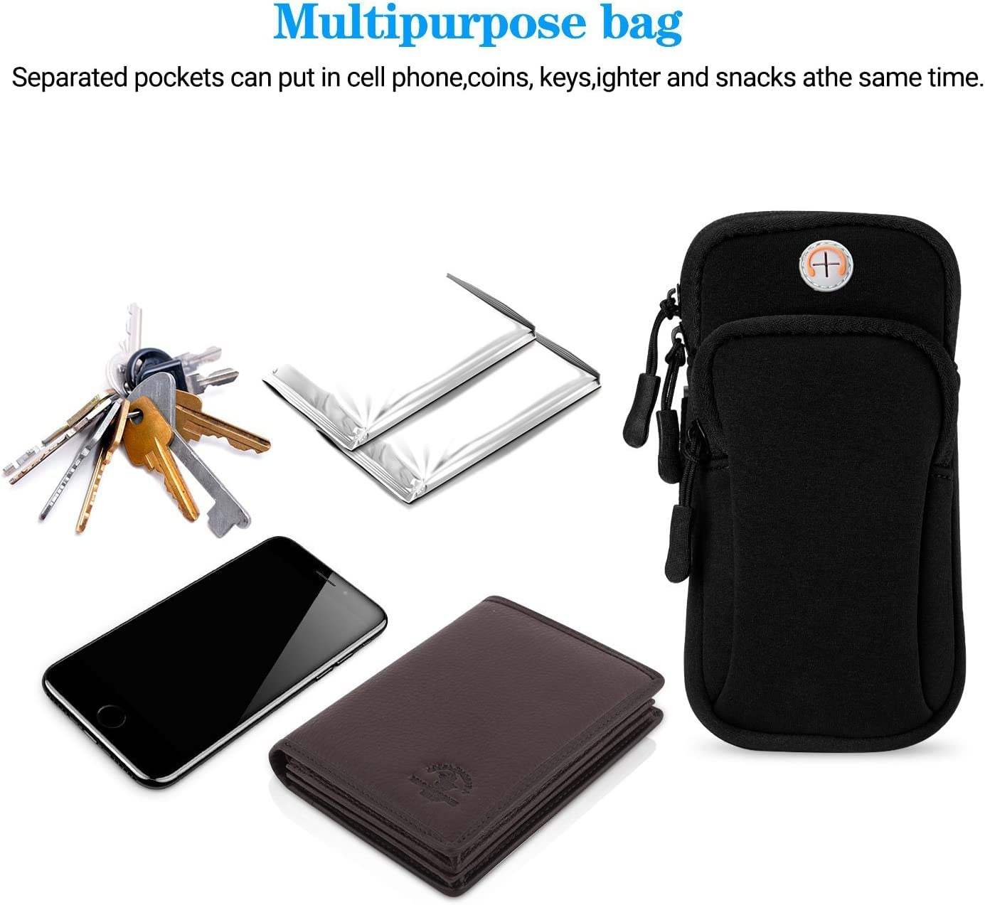 【Clever Design】 The running armband which with two large space arm pocket keeps your cell phone, key, card close during exercise.