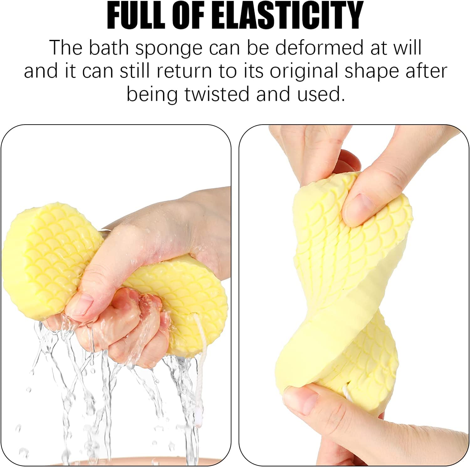 Enough to Apply: we will provide you with 2 pieces exfoliating body scrubber and 2 pieces 3 colored exfoliating bath sponge, 4 pieces hanging hooks are also available, enough in quantities and types to meet your daily requirement of using.After receiving the vacuum-packed sponge, it can rebound by itself when opened and soaked in water.