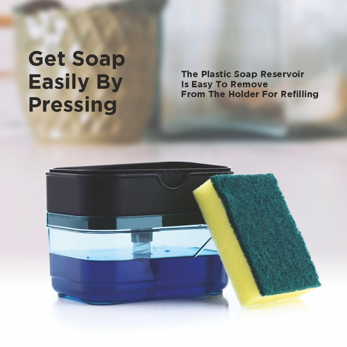 Large Capacity & Easy Dispensing: Sponge soap dispenser only needs to gently press down with one hand to dispense an appropriate amount of soap onto the sponge, extremely easy to use and helps reduce soap wasted. The dish soap dispenser has a capacity of 400ML so that you don’t need to refill it frequently, And suitable for all kinds of liquid soap.