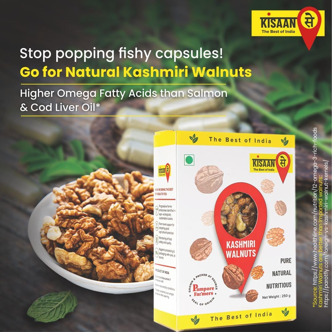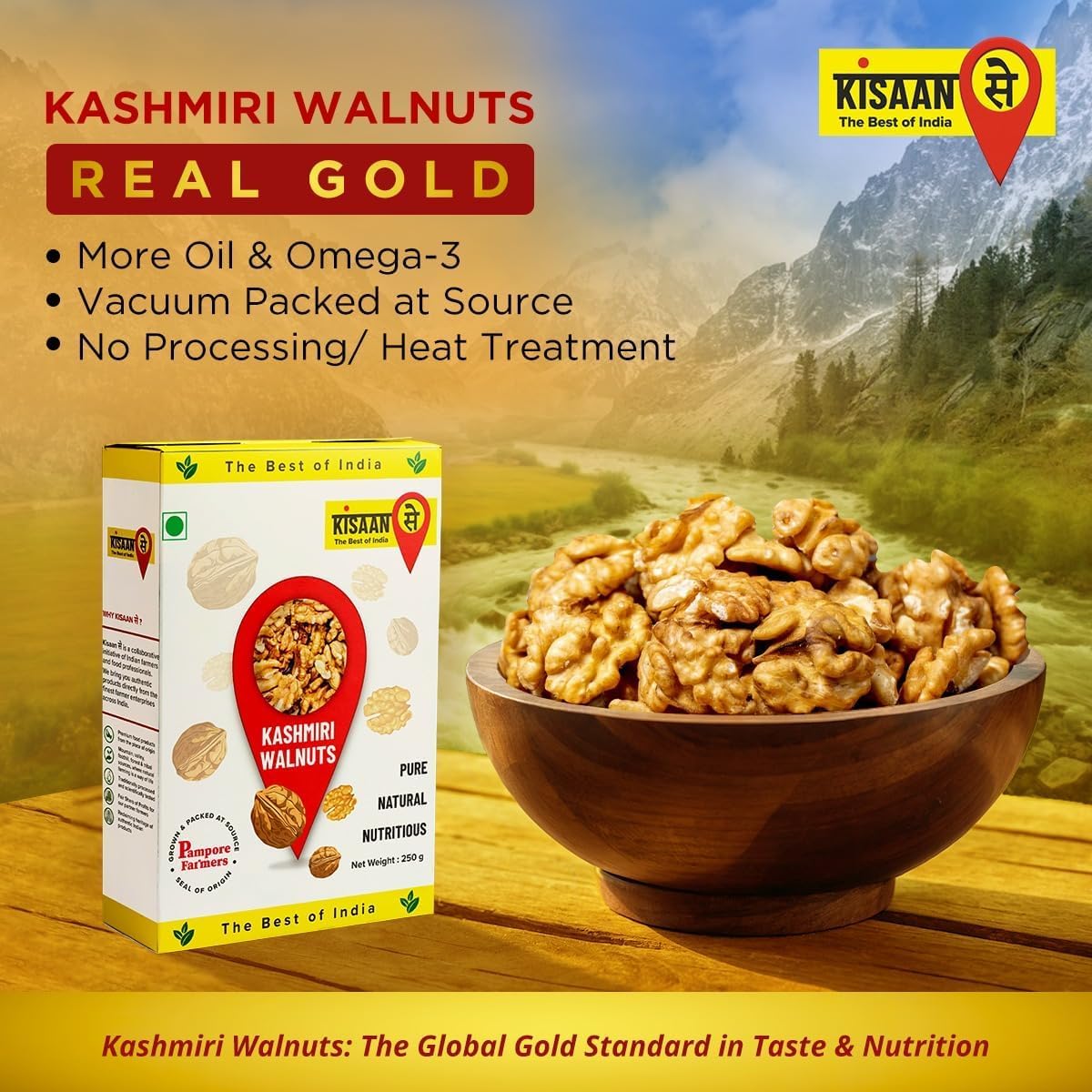 Kisaansay Kashmiri Walnuts 1kg, Without Shell, Best Oil Content, Vacuum-Packed...