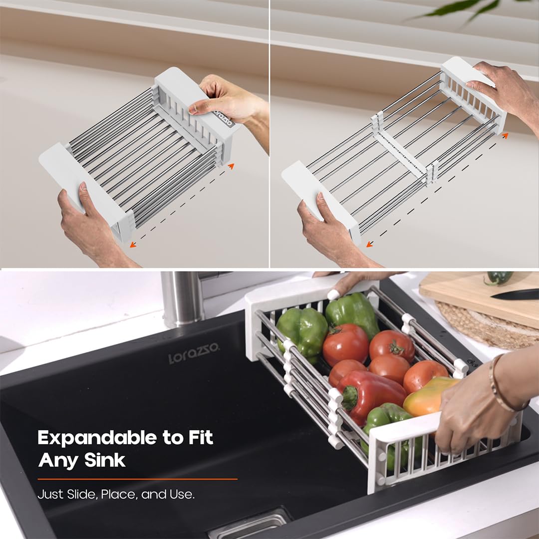EXPANDABLE TO FIT ANY SINK – Smartly designed expandable rack for kitchen use, this over-the-sink colander basket adjusts to fit most standard Indian kitchen sink racks and washbasins with ease.