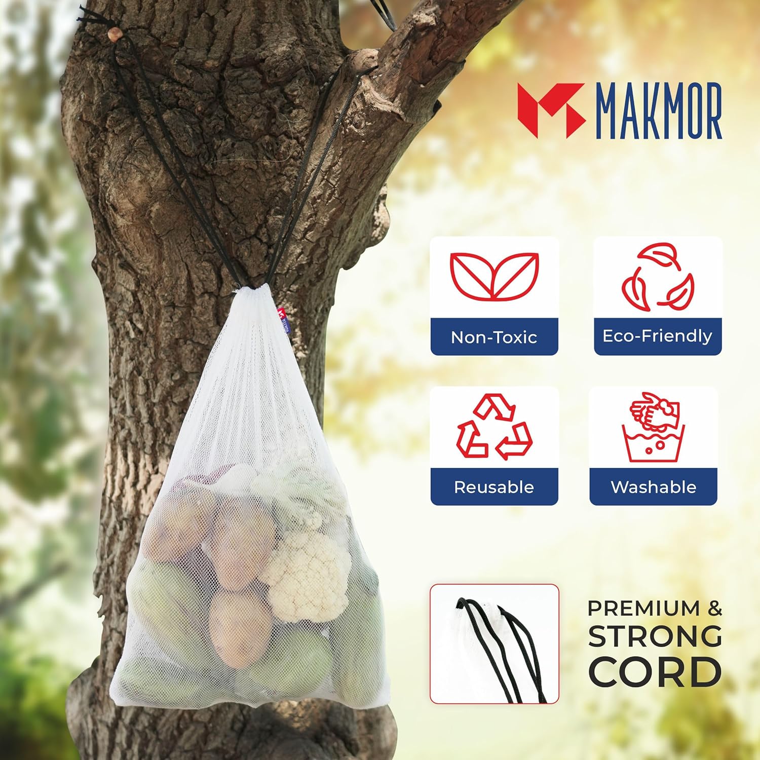 MAKMOR Cotton Reusable Drawstring Vegetable Bag Set of 6 Organic...