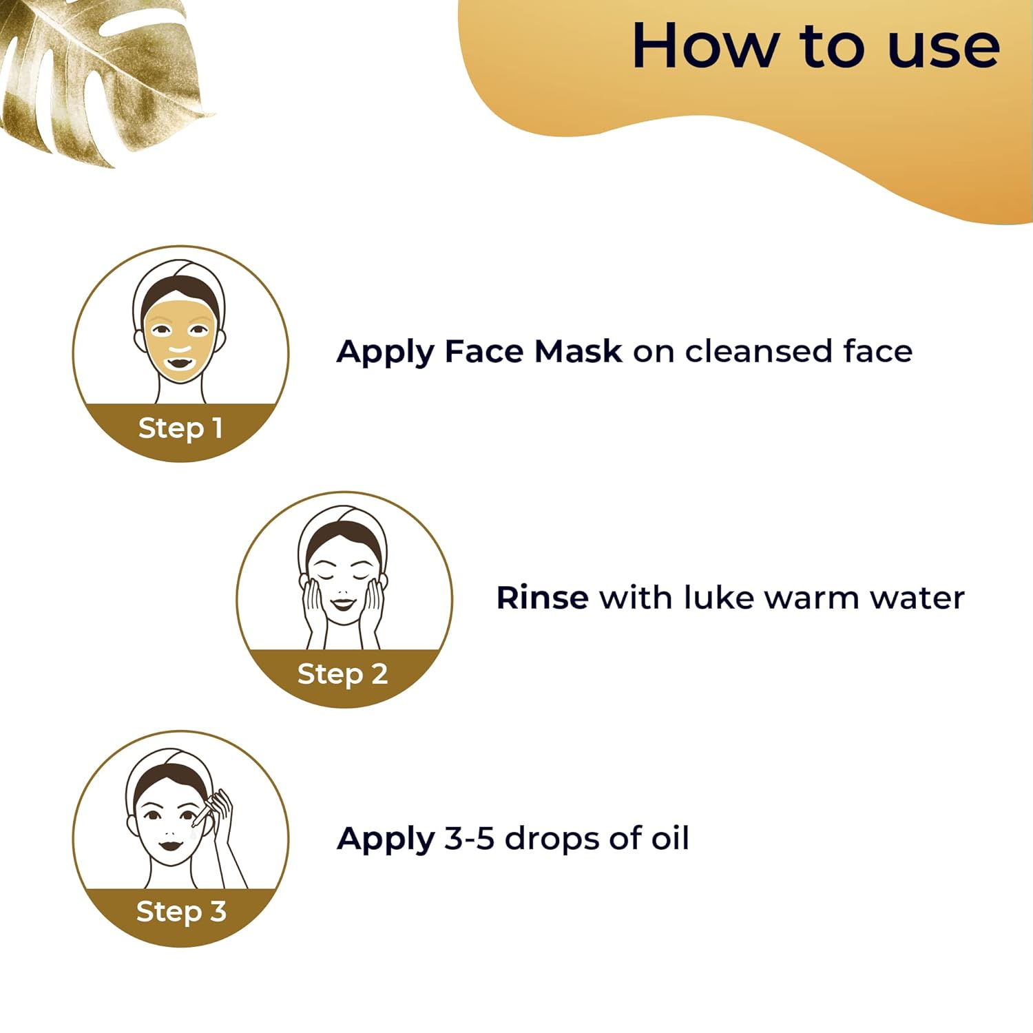 ✅How To Use: 24K Gold Facial Mask: Take a generous quantity and apply evenly on the face and neck. Leave on for 20 minutes. Rinse with lukewarm water. 24K Gold Beauty Oil: After cleansing and toning, apply 3-5 drops to the face and neck for glow.