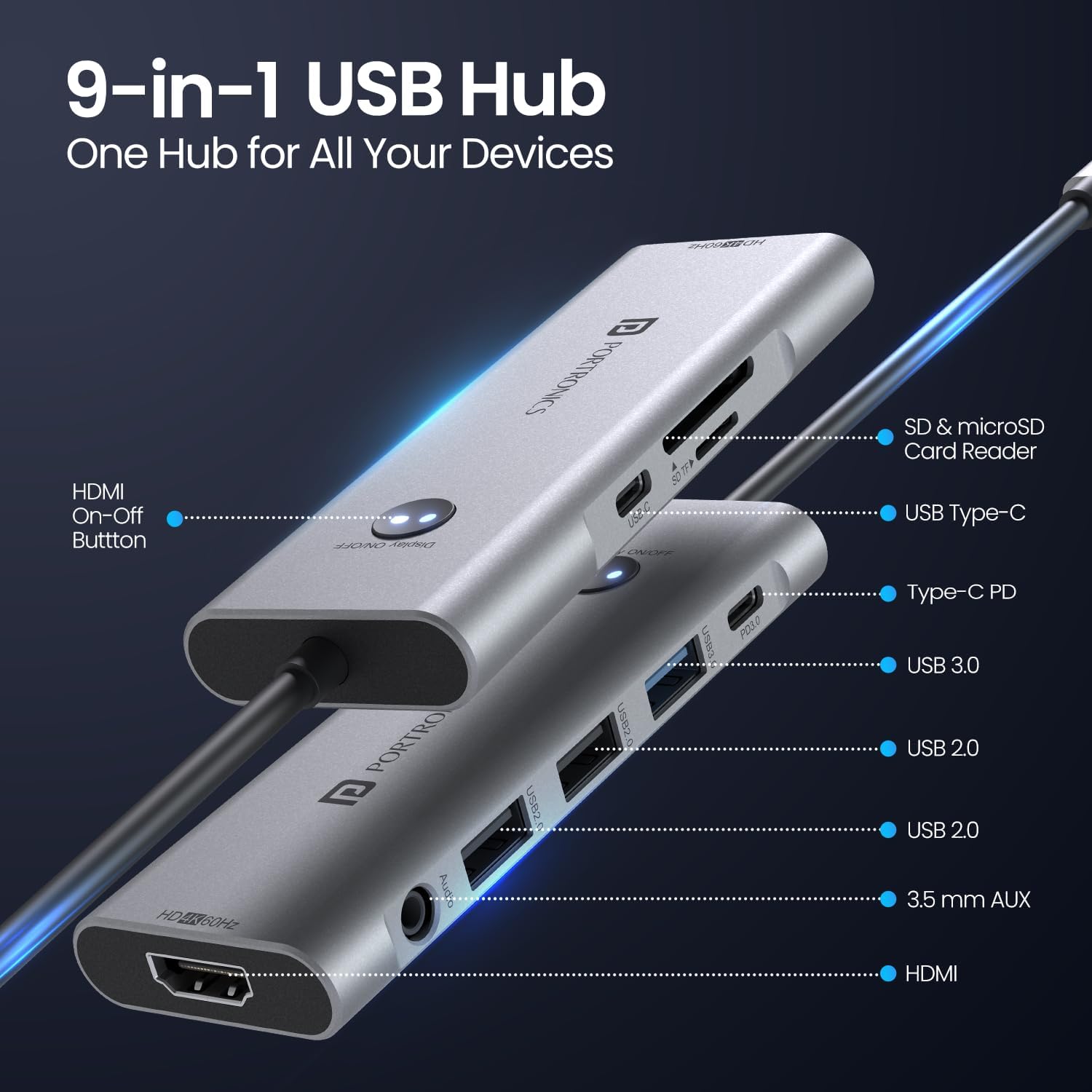 Portronics Mport One USB C Hub Dock (9-in-1) with 4K...