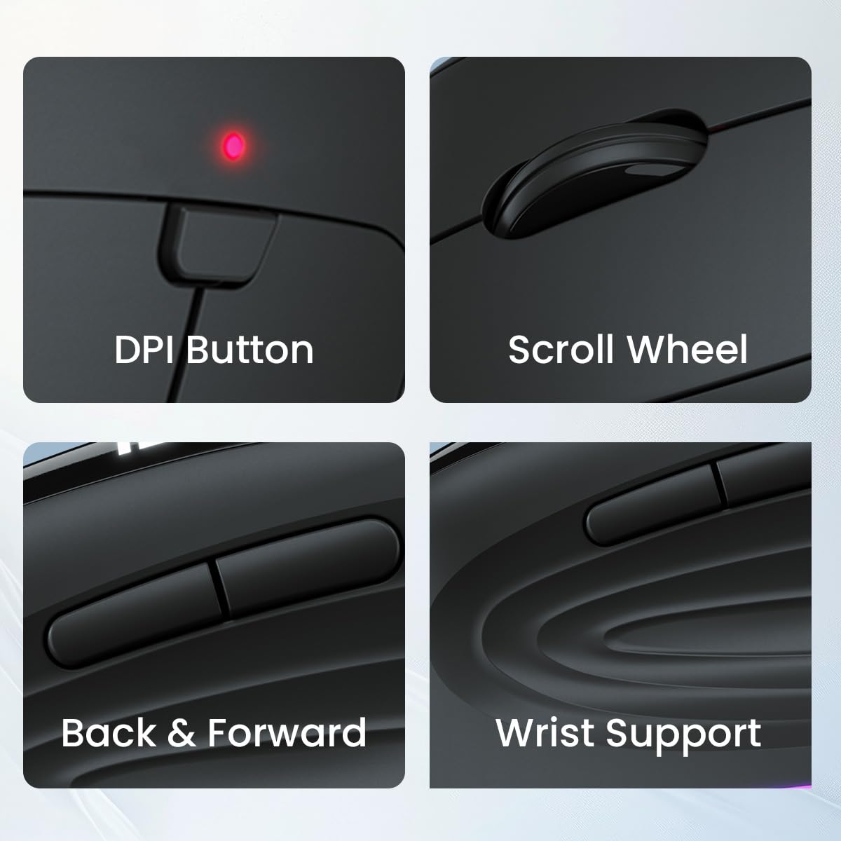 Precision Performance – Up to 2400 DPI: Whether you’re browsing, designing, or gaming casually, the adjustable DPI up to 2400 ensures smooth, accurate cursor control. You can easily toggle DPI levels to match your preferred speed and precision.