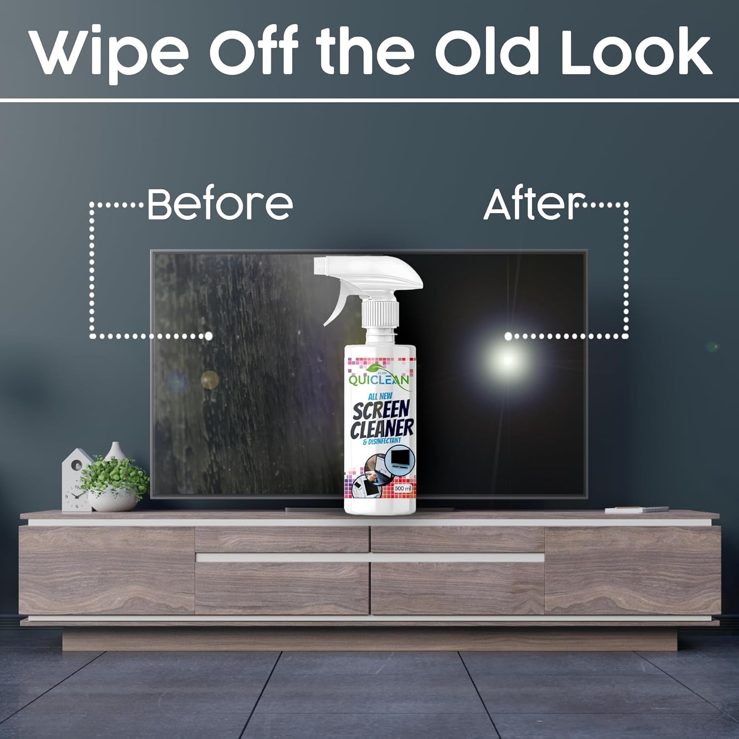 ✅ 500ML Large Quantity for Long-Lasting Use : With a generous 500ML spray bottle, Quiclean Screen Cleaner is designed to provide long-term value. This large quantity makes it an ideal laptop cleaner spray for cleaning large displays like LCD TVs, LED TVs, laptops, and monitors repeatedly without worrying about running out. One bottle can last for months of regular cleaning, making it a cost-effective solution for personal or professional use.