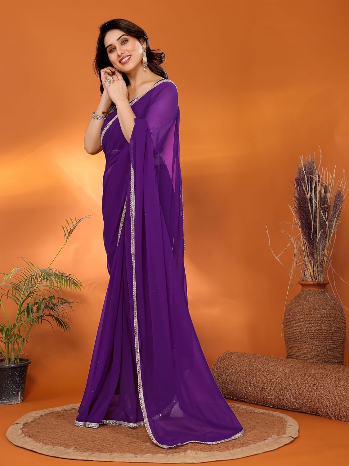 RAJESHWAR FASHION WITH RF Women’s Plain Georgette Sarees For Girls...