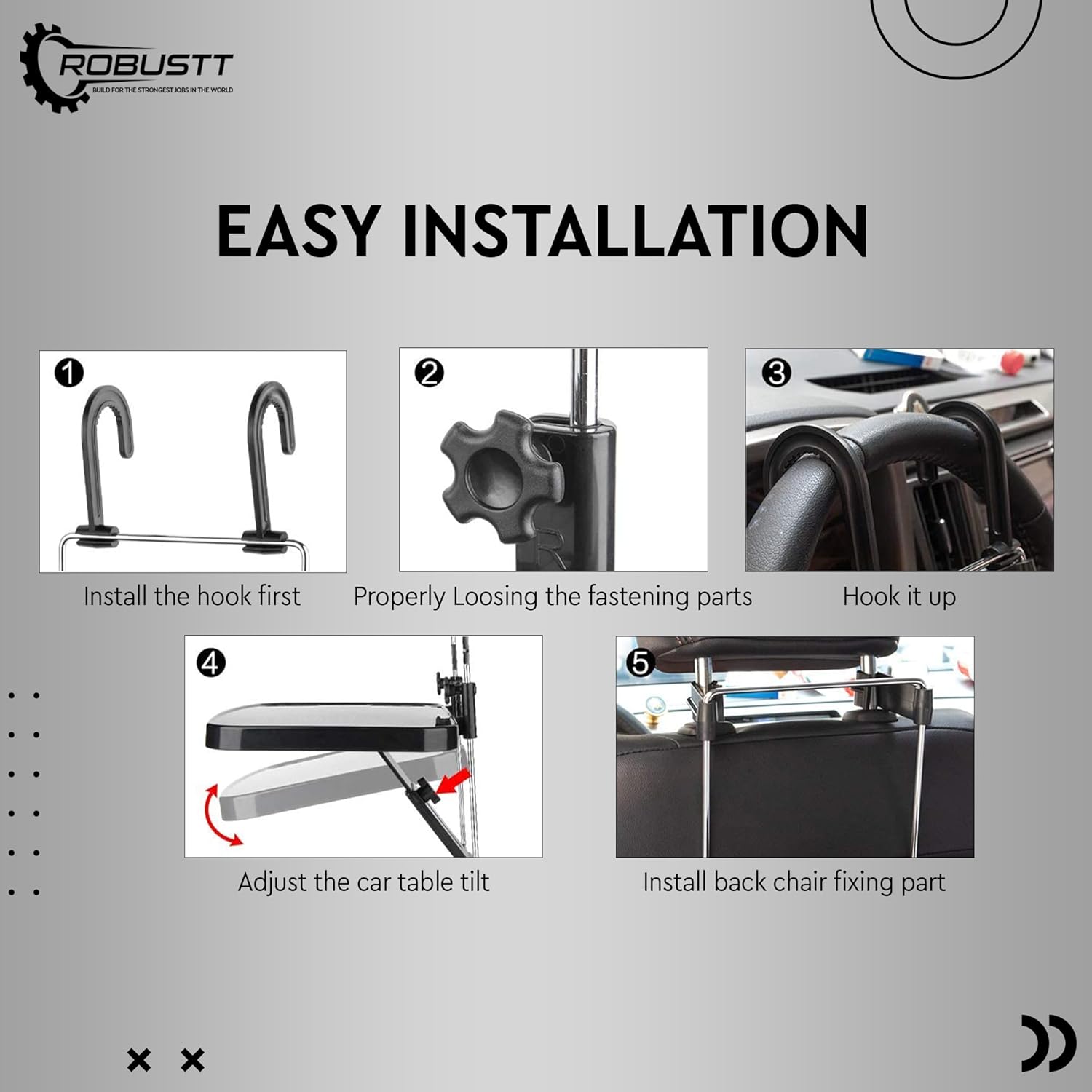 Car Steering & Back Seat Tray: The Robustt car tray seamlessly fits in any car model and can be easily placed on the steering wheel or attached to the back of the seat. Its built-in cup holder provides better stability for cups, bottles, and drinks while the car is in motion.