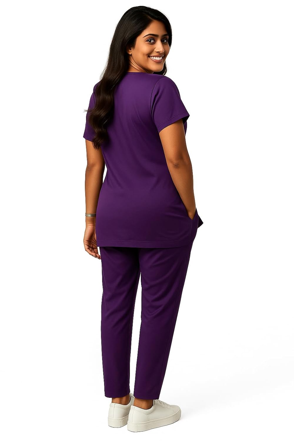 Discover comfort and functionality with RxFabric’s Regular Female Scrub Suit in Purple. Crafted from a premium blend of 75% polyester and 25% viscose, this lightweight and breathable scrub suit is ideal for extended working hours in healthcare settings. The thoughtfully designed V-neck style offers easy wear, while three practical pockets – one on the chest and two at the bottom – provide ample storage for essential items. The bio-wash treated fabric ensures exceptional softness against your skin, while the durable stitching maintains its shape through regular use. Available in sizes S to 3XL, this scrub suit combines professional appearance with practical features. The wrinkle-resistant and quick-drying properties of the polyester blend make maintenance simple, while the viscose component adds comfort and breathability. Perfect for doctors, nurses, and medical students who demand both functionality and comfort in their workwear.