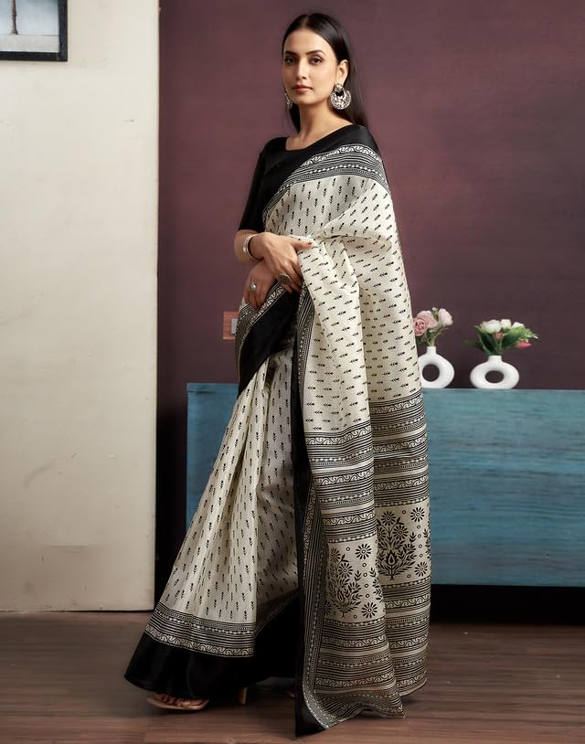 SIRIL Women’s Bagalpuri Silk Saree | Varli Printed Saree With...