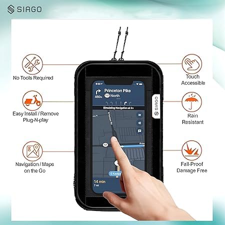Adjustable Viewing Angle: Features a 360-degree swivel and tilt adjustment, allowing you to find the perfect viewing angle for navigation or calls while riding