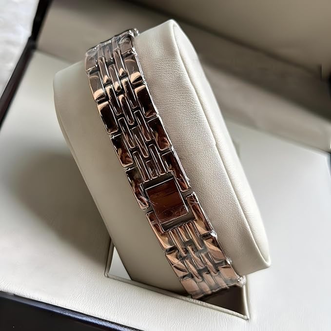 This watch features a sleek, glossy bracelet-style strap that effortlessly adapts to any wrist size. The 15mm width offers a stylish and modern look, while the fancy jewelry buckle clasp ensures a secure and adjustable fit. Whether you have a petite or larger wrist, this strap is designed for ultimate comfort and convenience.