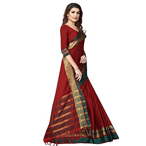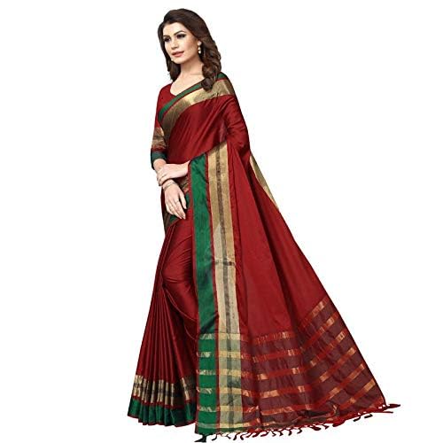 VJ Fashion Women Cotton Silk Zari Border Saree With Blouse...