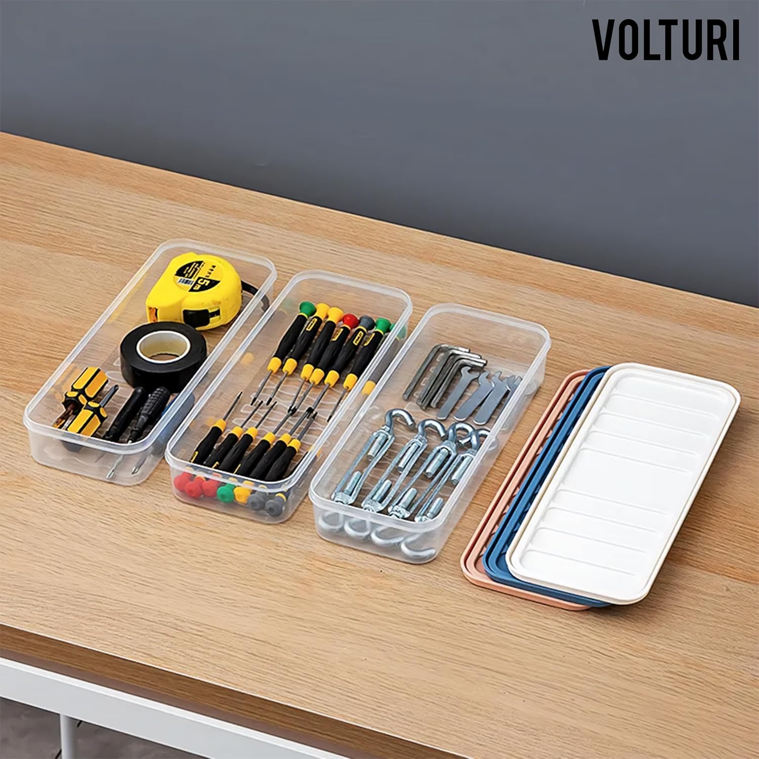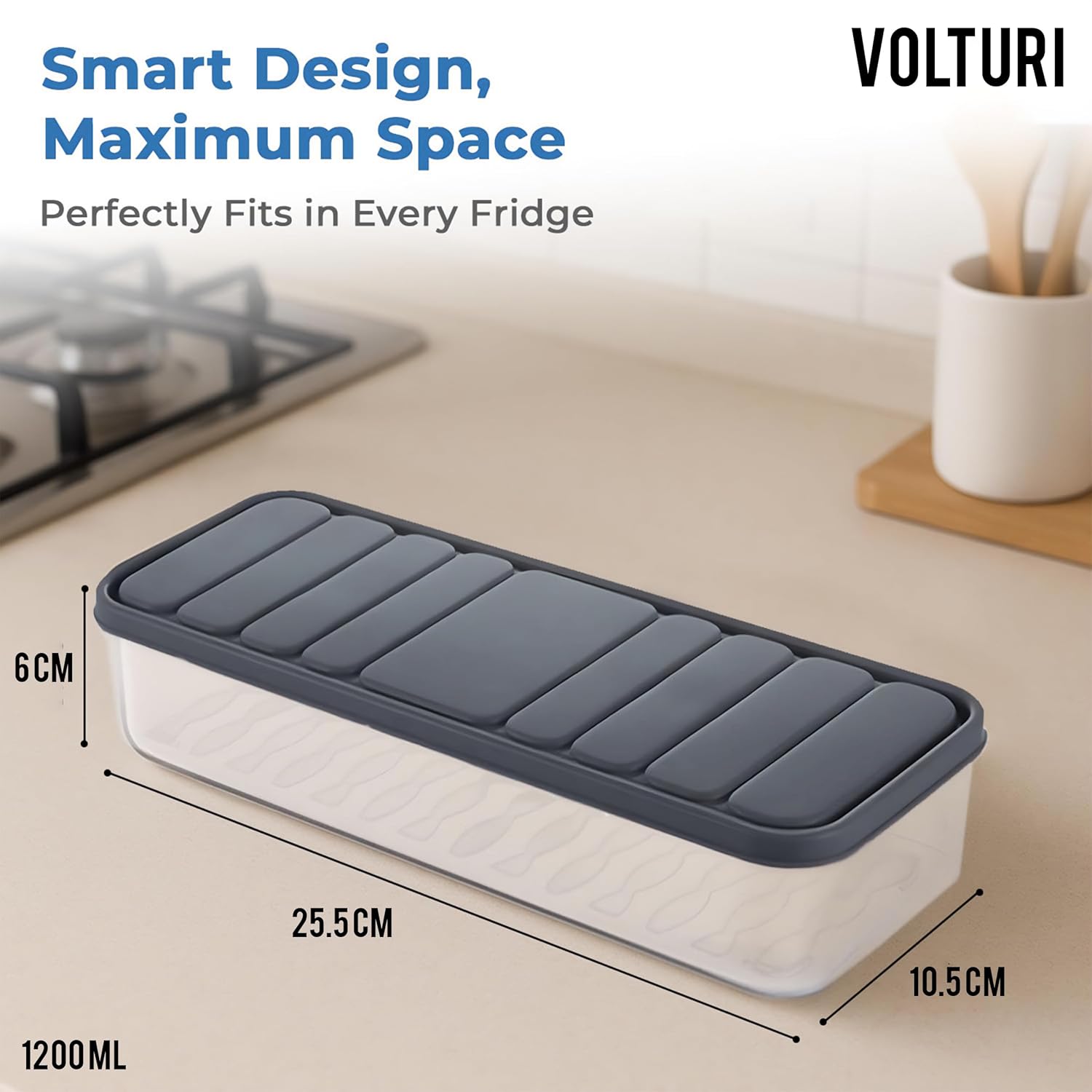 Ideal Size & Versatile Use: VOLTURI fridge storage containers hold up to 1200 ML and measure 25.5 x 10.5 x 6 cm, making them perfect for use in the refrigerator, freezer, kitchen cabinets, pantry, or countertops. Great for organizing fruits, vegetables, snacks, and more.