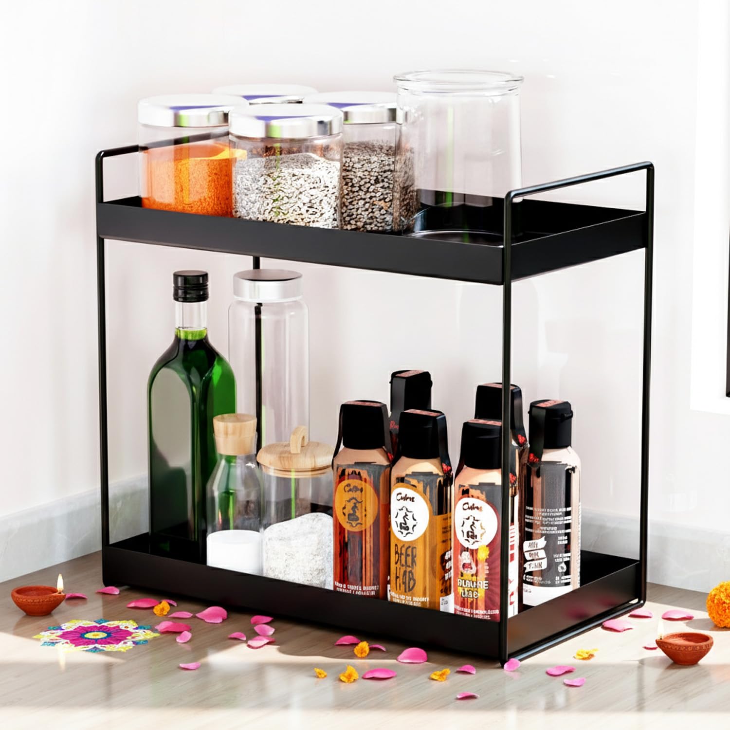 Durable Construction: Made from strong GI Steel, this bathroom countertop organizer is rust-proof and built to last. The solid base ensures a stable hold for all your items.